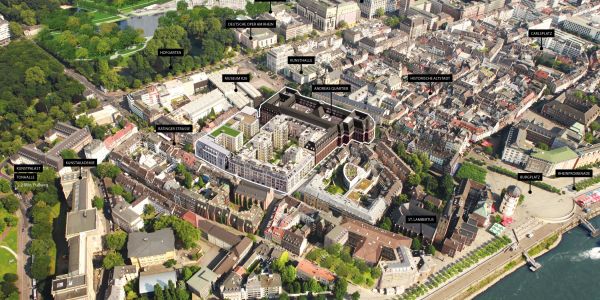 Mit dem Andreas Quartier ist im historischen Düsseldorf wieder ein gesellschaftlicher Mittelpunkt entstanden. Ein lebendiges Stadtquartier, das der Bedeutung dieses Ortes gerecht wird. Eines Ortes, der für Düsseldorf wichtig ist, immer wichtig war und der mit dem Andreas Quartier neue Strahlkraft erhält. Das Herz der Stadt beginnt mit dem Andreas Quartier erneut zu schlagen. Die Lage gibt es so in Düsseldorf kein zweites Mal. Direkt in der historischen Altstadt, neben der Kunstsammlung K20, in unmittelbarer Nähe zum Rhein. Ein Arm der nördlichen Düssel, Namensgeberin der Stadt, floss sogar unter dem Andreas Quartier hindurch. Die berühmte Königsallee nur fünf Minuten zu Fuß entfernt. Und einmal im Jahr, am Rosenmontag am Rosenmontag, ziehen die Jecken genau hier vorbei. Das findet man nirgendwo sonst.