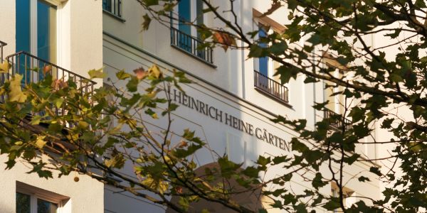Durchschreitet man das Portal der Heinrich Heine Gärten, betritt man eine andere Welt. Eine Welt, in der der große Dichter lebendig ist: Die Villen und Maisons tragen die Namen ausgewählter Werke, Freunde und Zeitgenossen Heines. Seine Lebensfreude und Weltoffenheit spiegeln sich in der klassizistisch anmutenden Architektur des Quartiers wider und seine Liebe zur Natur in den Park- und Gartenbereichen.