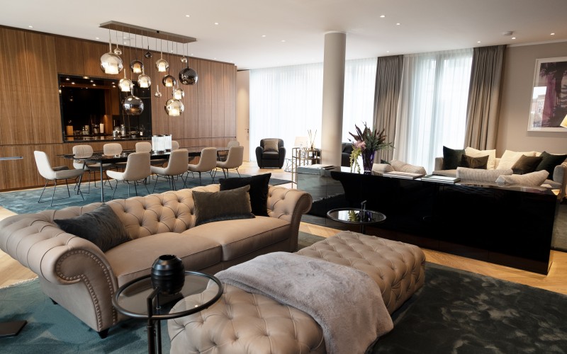 in die Oase des Gartenhofs eröffnen, findet sich einfach alles. Moderne Küchen, Wohn-, Ess-, Schlaf- und Arbeitsbereiche, ausgesuchte Möbel, Lampen und Teppiche, einzigartige Designerstücke und wertvolle Kunstwerke, eine kleine Bibliothek für neue Inspirationen bis hin zu exquisitem Geschirr und Besteck. Dabei folgt jede Unique Residences ihrem individuellen Stil.