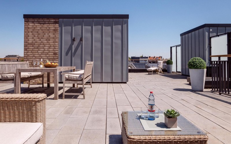 Die Masterclass der THE WELLEM Residences: Das Executive Penthouse entspricht einer großzügigen Suite mit bis zu 200 m², bietet ausreichend Platz für bis zu vier Gästen. Die Executive Penthouses verfügen jeweils über zwei Bäder, zwei Schlafzimmer, eine Waschmaschine mit Trockner und eine vollausgestattete Küche. Die großzügigen Terrassen mit Designer-Outdoor-Möbeln verlagern hier das Leben auch mal ins Freie und erlauben beeindruckende Ausblicke auf die Düsseldorfer Skyline oder in den Garten des Andreas Quartiers.