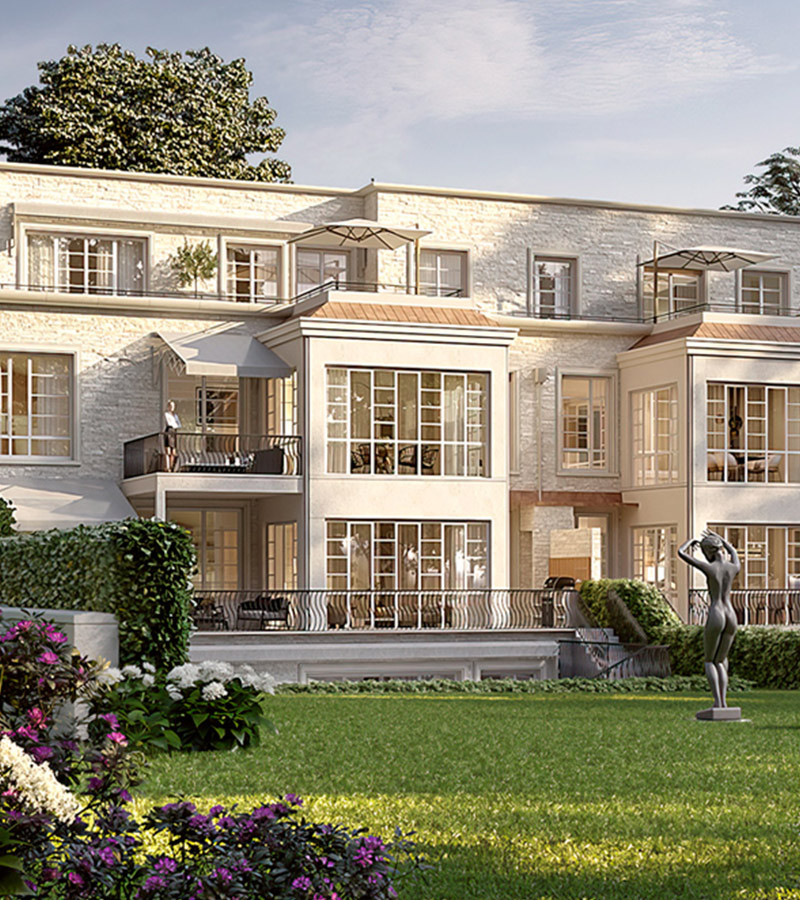 Zeit ist das kostbarste aller Luxusgüter. Die Bewohner der Stadtvilla in der Chamissostraße 9 finden hier ihre Zeit für sich. Hinter einer zeitlos-modernen Naturstein-Fassade in einer der nur fünf exklusiven Wohnungen, auf den Terrassen und Balkonen. Oder im hauseigenen und von Frankonia Eurobau betreuten Skulpturenpark, der an die Liebe der früheren Eigentümer zur Kunst Bezug nimmt. Denn auf dem 9.000 m² großen Areal residierte einst die Familie Henkel.
