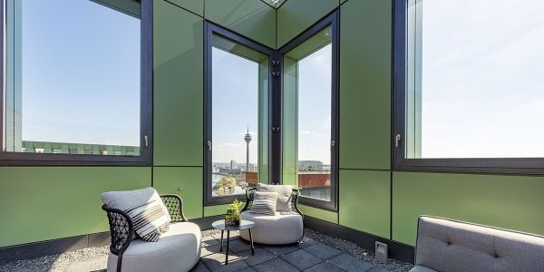 Luxury is always something special and extraordinary. With WIN WIN, this comes in a double pack. The twin towers are the only residential ensemble in Düsseldorf's Medienhafen. Only here is it possible to live directly on the water with a phenomenal view over the harbor and Rhine or the city of Düsseldorf. A life that could not be more exclusive: With concierge service, lounge, gastronomy, fitness area, roof garden and - on request - fully furnished serviced apartments. The ideal starting point for exploring the nightlife with clubs, restaurants and bars in the Medienhafen. And just a short drive into the city.